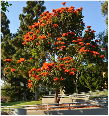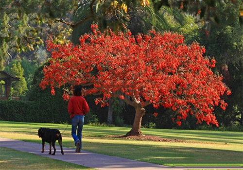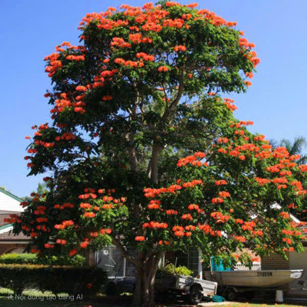 Khi hoa nở đồng loạt, cả tán cây phủ một màu đỏ đặc trưng, gây ấn tượng mạnh về mặt thị giác