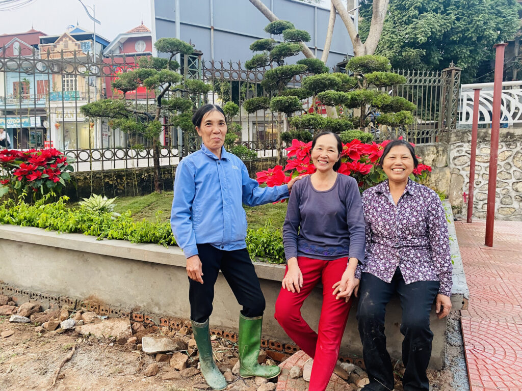 Thiết kế cảnh quan sân tường, do Đoàn thanh niên của trường chủ trì.